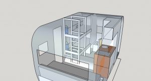After working on the couch I went right to drawing up the bunk bed. Right now my kiddos are 2.5 and 14 months, they are in small mattresses. For the purpose of this trip the small size helps because it gives us more open square footage during the days (and nights, because Denver will be napping on the floor… finally acting like a dog! He’s not excited!) BUT I would like the beds to be able to grow with them. And heck, there may just be nights I want a bunk to myself! Mwahahaha! (a girl can dream, right?!) Anyway, I want them to extend out to fit a full sized adult too. So, this is what I have come up with.